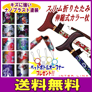 【送料無料】【あす楽】スリム折りたたみ伸縮式カラー杖杖 折りたたみ ステッキ オシャレ 軽量 即日配送 ペットボトルオープナー付 収納ケース付 替えゴム1個付き インターリンクス 敬老の日 誕生日 【沖縄・離島配送不可】【期間限定ポイント10倍】在庫限り