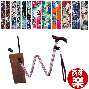 【折りたたみ杖カラー杖】 キズに強いナノブラスト塗装採用! ・カラフルな花柄で気分まで、明るくなります。