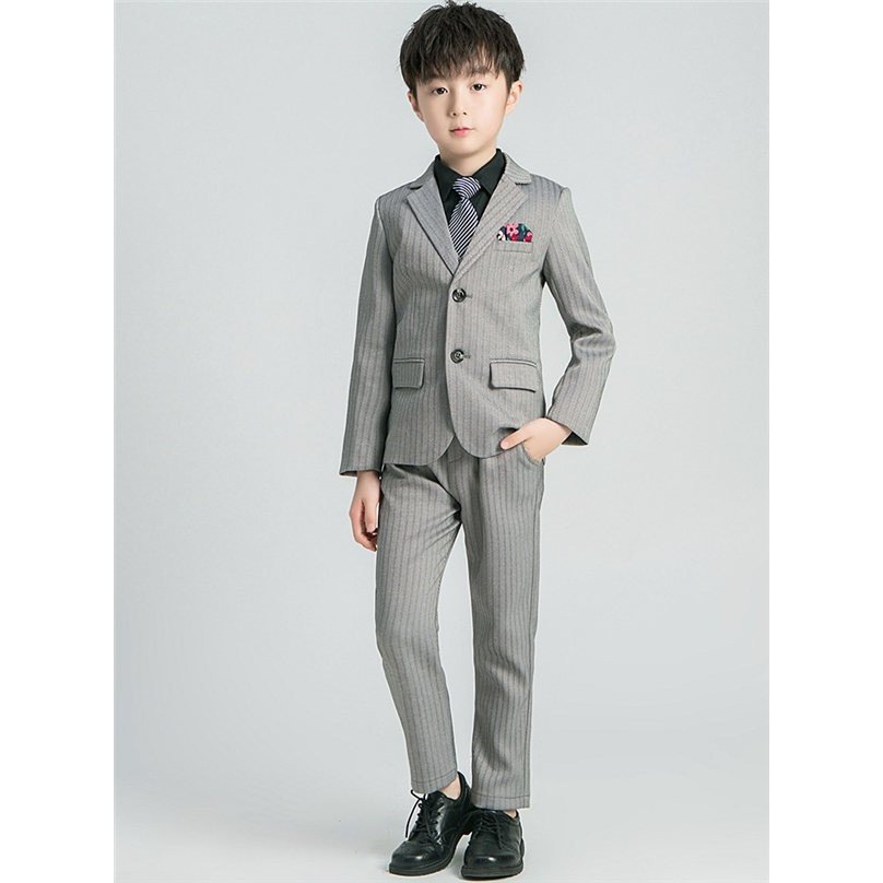 即納 フォーマルスーツ 男の子 スーツ キッズ 子供 4点セット ベスト 上下セット セットアップ タキシード ストライプ ジュニア 入学式 卒業式 七五三 結婚式 発表会